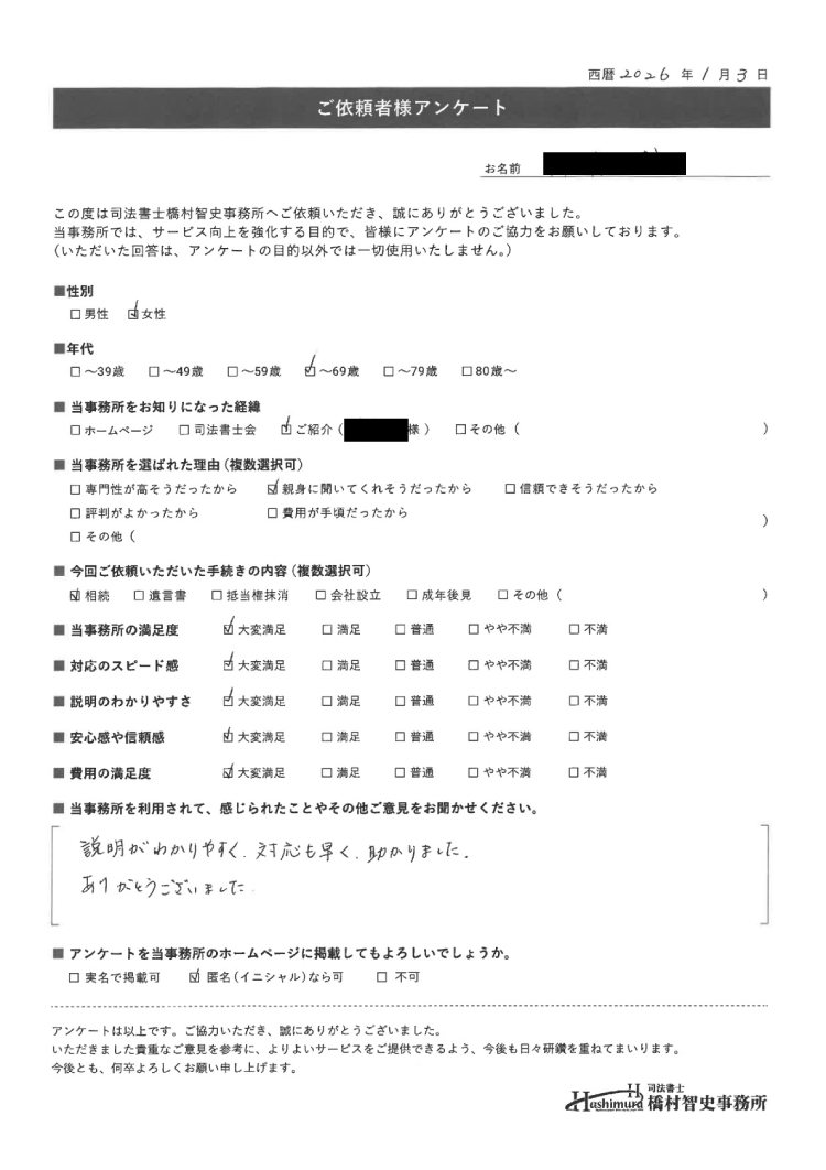 説明がわかりやすく、対応も早く、助かりました。ありがとうございました。
